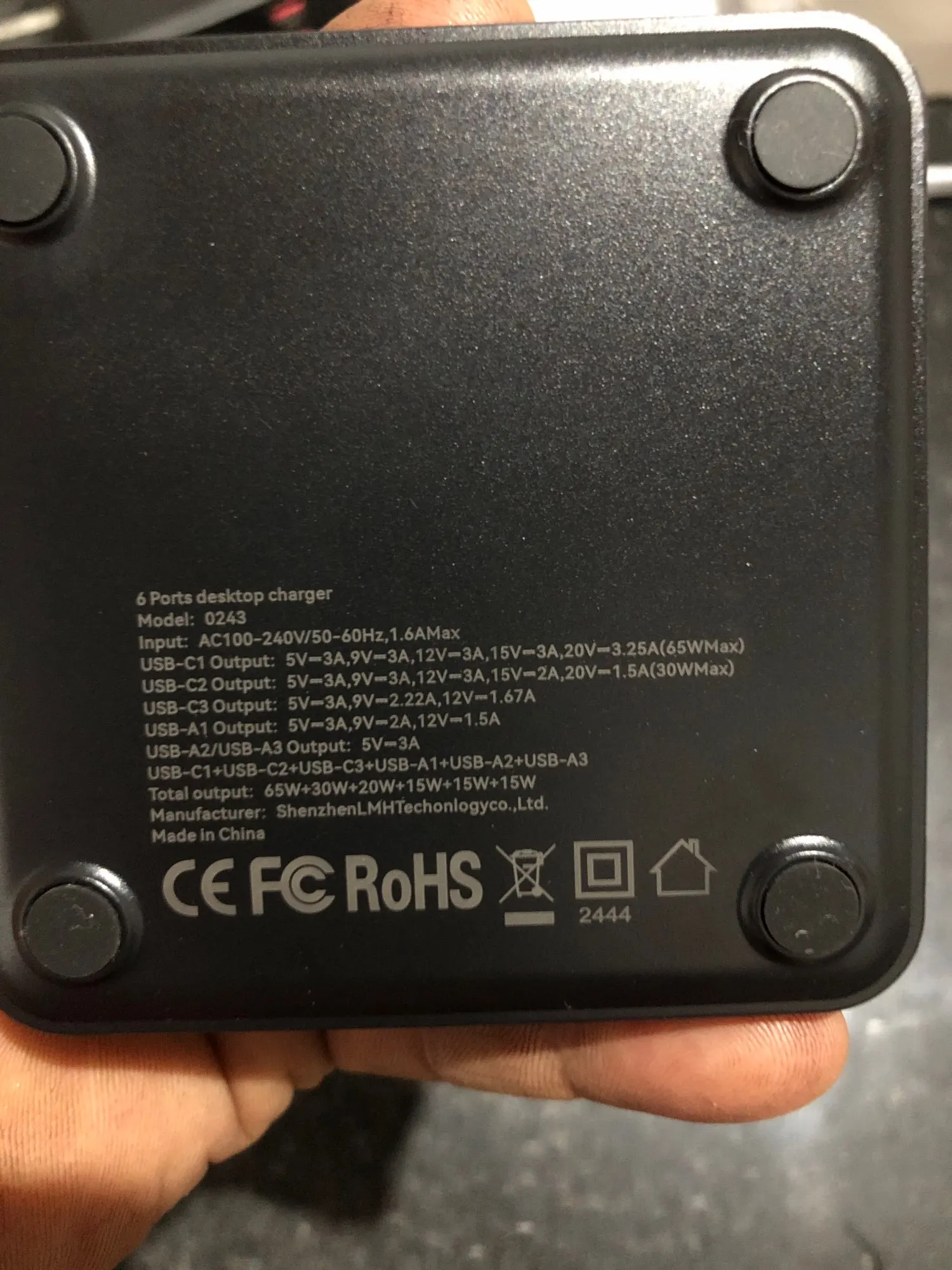 USB-C1+USB-C2+USB-C3+USB-A1+USB-A2+USB-A3 Total output:65W+30W+20W+15W+15W+15W